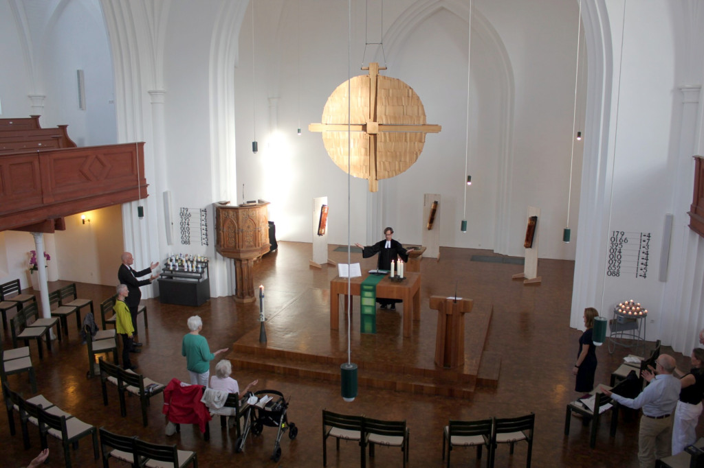 Dieses rege Teilhaben war wesentlicher Bestandteil des Gottesdienstes, da die Gemeinde viele komplette Kirchenlieder, die bisweilen nur mit einer Strophe bekannt sind, zur Orgelbegleitung von Juliane Widder singen durfte. Auch eine Wahrnehmungsübung vertiefte das Erleben.