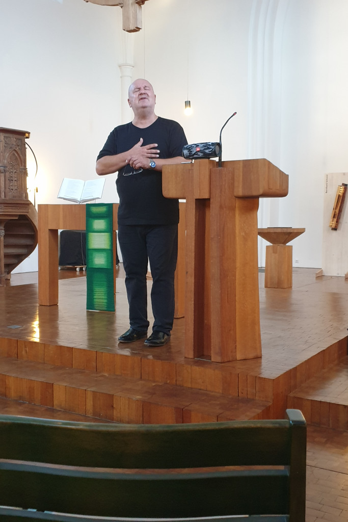 Der Gottesdienst am Abend des 3. September 2022 schuf eine Verbindung zwischen KUNST, die in Form von Holzskulpturen den Kirchenraum schmückte und dem Tag der SCHÖPFUNG. Der Ökumenische Rat der Kirchen (ÖRK) hat die diesjährigen Veranstaltungen unter das Motto: „Die Liebe Gottes versöhnt und eint die leidende Schöpfung“ gestellt.